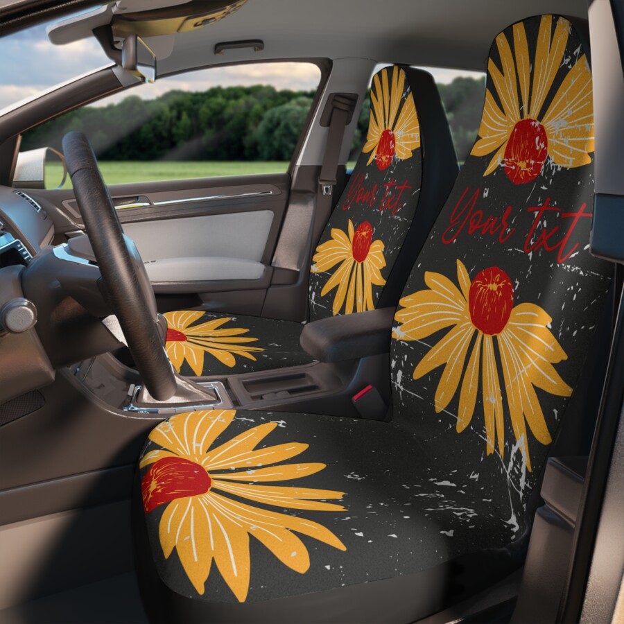 Custom name flowers car seat covers, retro boho flowers car seat covers, vintage seat covers for vehicle, gift for new driver, car accessory
