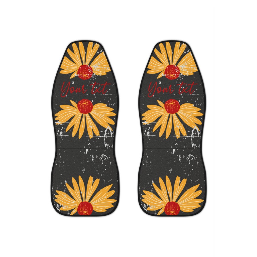 Custom name flowers car seat covers, Turn everyday drives into a little celebration of color and personality. These retro boho floral seat covers bring vintage charm to your car — faded-petal hues and hand-drawn blooms that feel like the roadside markets and sunlit afternoons of another era. Slip them on, and the cabin softens: soft-to-the-touch fronts, rich printed patterns, and a snug fit that hugs the seat. They protect against spills and wear while keeping the look coordinated with matching designs on both covers. Whether it’s a new driver taking their first solo ride, a weekend escape to a coastal town, or a morning commute that needs a small lift, these covers make the interior feel thoughtfully tended and quietly joyful.