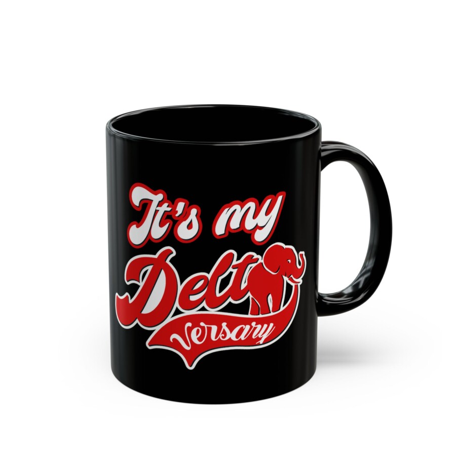 Deltaversary Black Mug – “It’s My Deltversary” Funny Delta elephant gift for your line sisters, Coffee Cup (11oz)