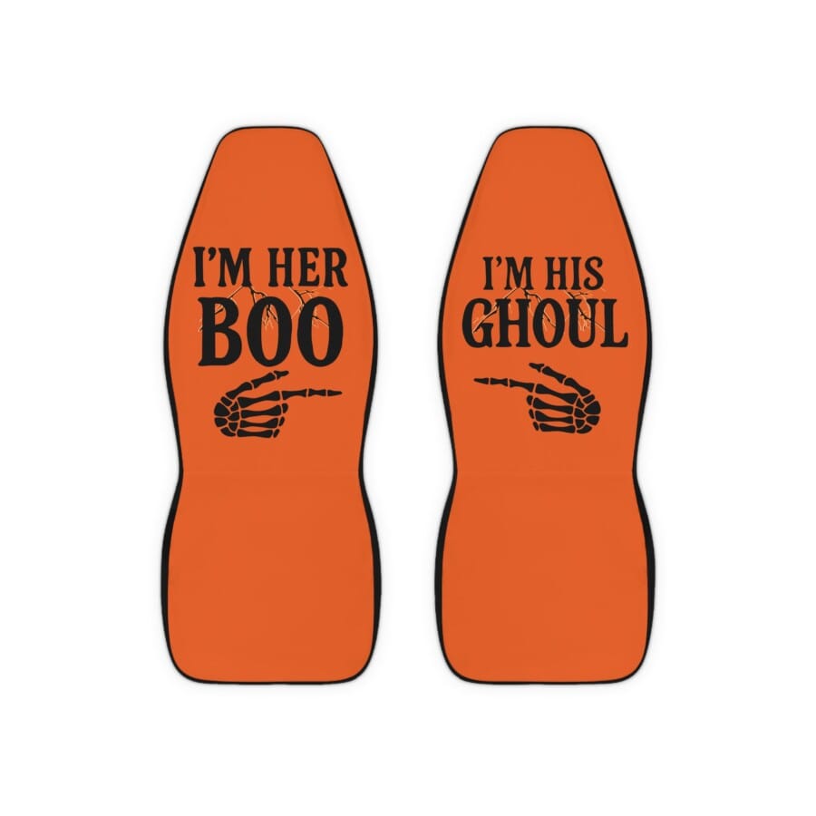 I’m her Boo car seat covers, I’m His Ghoul, Halloween Car Seat Covers, Enhance your car’s interior with these vibrant polyester car seat covers that bring a playful and spooky vibe to your automotive decor. Perfect for Halloween enthusiasts, these covers feature bold designs that will make your vehicle stand out. Imagine cruising through town, celebrating the spooky season with style, and turning heads wherever you go. Ideal for couples who want to express their fun-loving relationship, these seats add a charming touch to any car, making them perfect for Halloween parties, road trips, or just everyday drives. Treat yourself or surprise a loved one with this unique gift for Halloween or any occasion that calls for a dash of personality in their vehicle!