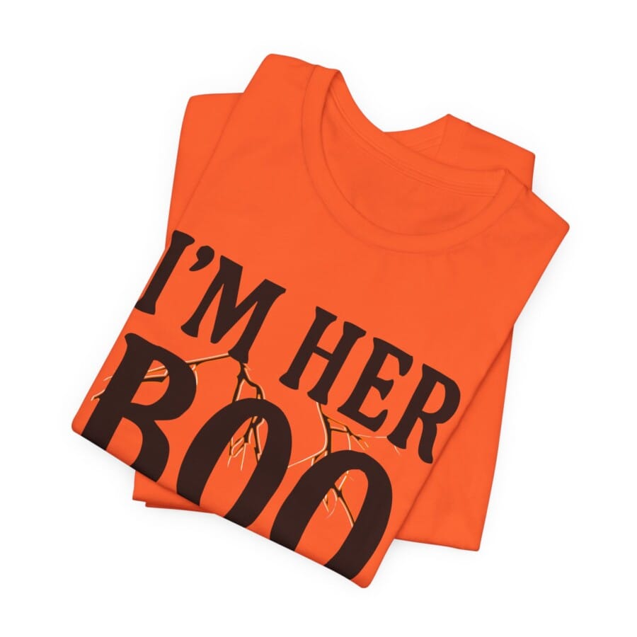 I’m Her Boo shirt, Celebrate the spooky season with this vibrant Unisex Jersey Short Sleeve Tee. Featuring a playful design that reads ‘I’m Her Boo,’ this shirt adds a fun twist to your Halloween wardrobe. Its lightweight fabric ensures comfort whether you’re attending a costume party or enjoying a cozy night in with friends. Ideal for couples looking to show off their festive spirit, this shirt is perfect for Halloween fun, themed parties, or just stylish everyday wear. The crew neckline and casual fit make it easy to layer, making it a versatile choice for all your fall outings. Embrace the cheerful vibe of Halloween with this tee that embodies both fun and comfort!