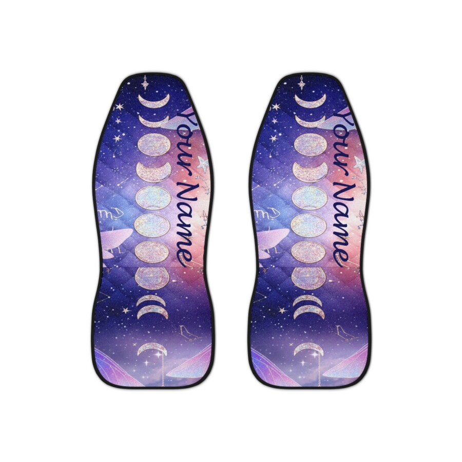 Lunar Phases Personalized Car Seat Covers — Galaxy Moon Name Customization