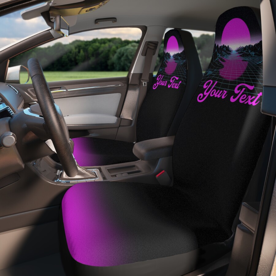 Metaverse Sunrise, Custom Car Seat Covers, Purple Personalized Name