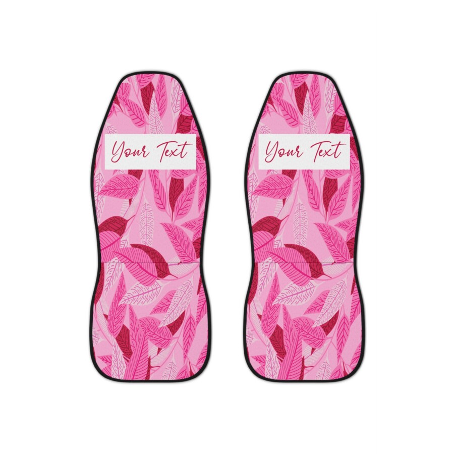 Pink Feathers Car Seat Covers, Slide into a ride that feels personal. These pink-feather car seat covers bring a playful, feminine touch while guarding interiors from daily spills and wear. Soft on the surface and built from thick, durable polyester, they sit snug with elastic lining and dual hook straps so the design stays aligned even on bumpy streets. Two identical covers come per set with a black back for a clean look. Add a custom name to make your commute feel like it was made just for you — whether you’re running errands, heading to brunch, or freshening up a road-trip car, these covers add color and personality without sacrificing protection. Note: not compatible with seats that have side airbags.