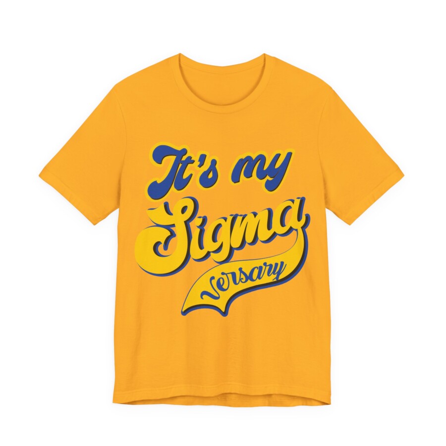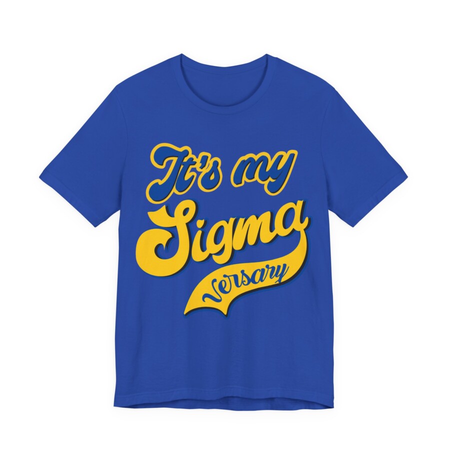 Sigmaversary Shirt – Celebration Tee for Sigma, Sorority gift, Soft, breathable, and proudly retro — this lightweight jersey tee brings bright, collegiate-style lettering front and center. The vintage script reads like a rally cry, layered in bold blue and warm gold so your chapter pride stands out without shouting. Wear it to reunion events, casual chapter meetings, or long afternoons on campus; it layers easily under a jacket or stands alone with jeans. The crew neckline and retail fit keep the silhouette clean and easy to accessorize, while the tear-away label and soft Airlume cotton prioritize comfort during long celebrations. Ethically produced and REACH certified, this shirt feels good to wear and to support.